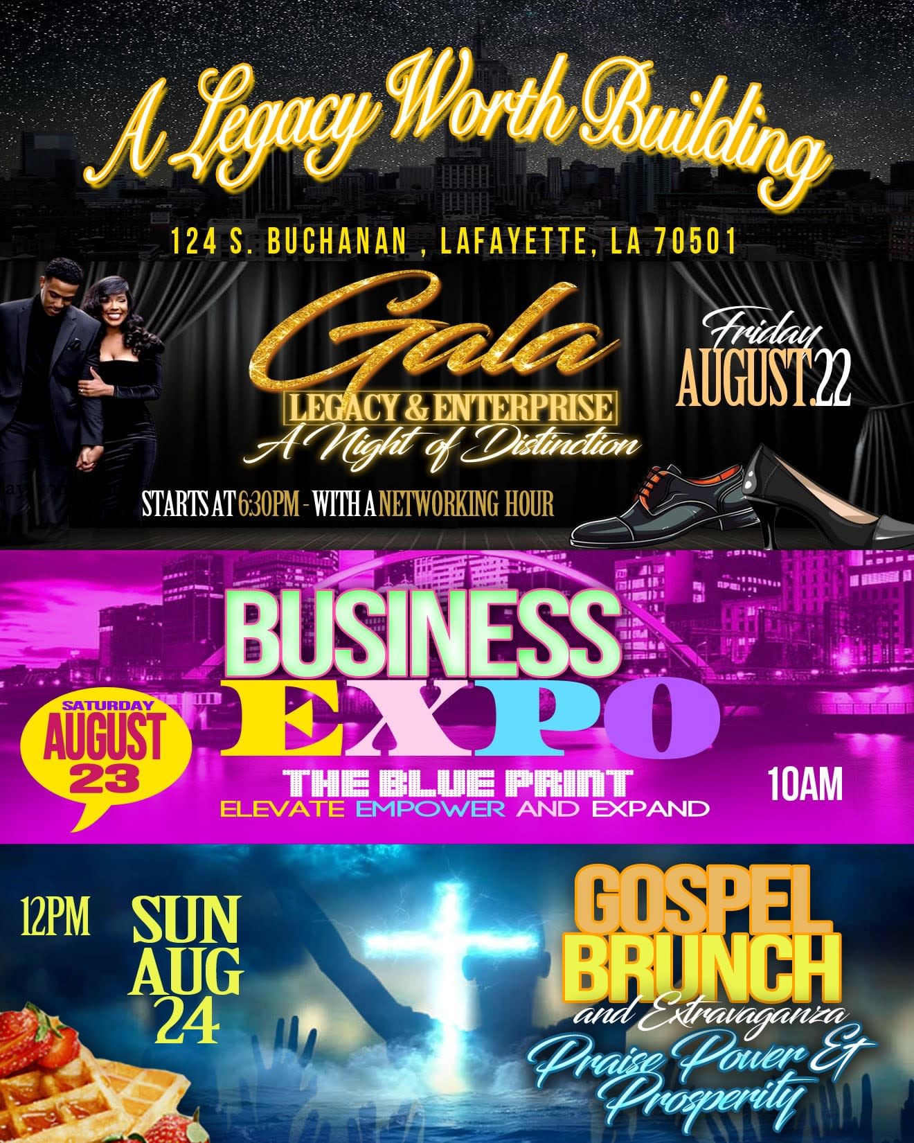 •Sunday Gospel & Zydeco Brunch – A soulful celebration blending faith, music, and culture. Featuring live performances, local cuisine, and a spirit-filled atmosphere to close out the weekend in joy and unity. This annual event reflects the mission of the SWLA Black Chamber of Commerce: to uplift, advocate for, and grow Black-owned businesses throughout the region.($20)